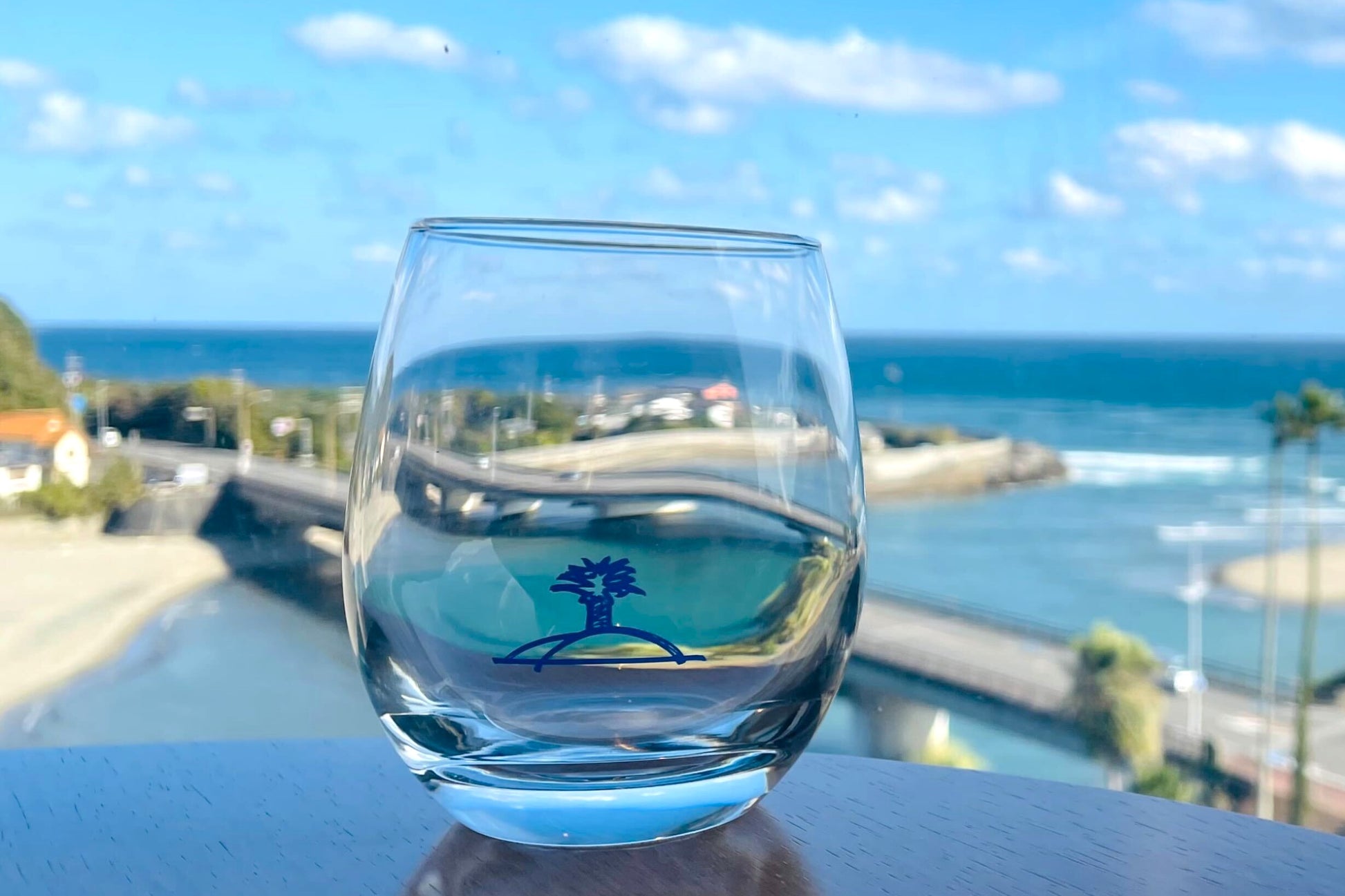 南国を感じるヤシの木のロゴを添えたデザインで、お水やジュース、お酒など様々なシーンでお使いいただけます。