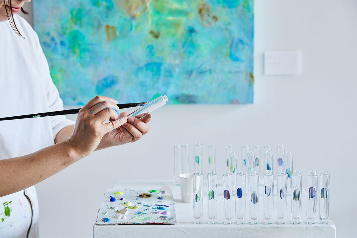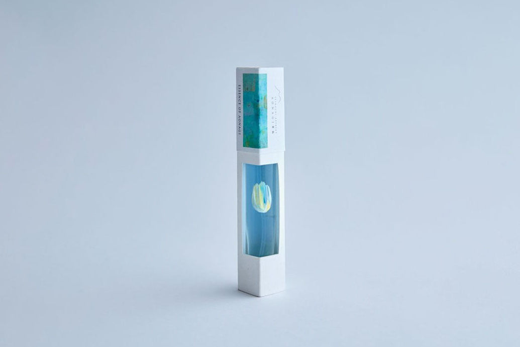 パッケージデザインには、愛媛で活動する自然画家 絵美氏がその香りからインスピレーションを受けて制作した作品を採用。 作品に使用した絵の具で 、一本ずつボトルにペイントを施した特別仕様。100本だけの限定コレクションをご用意いたしました。