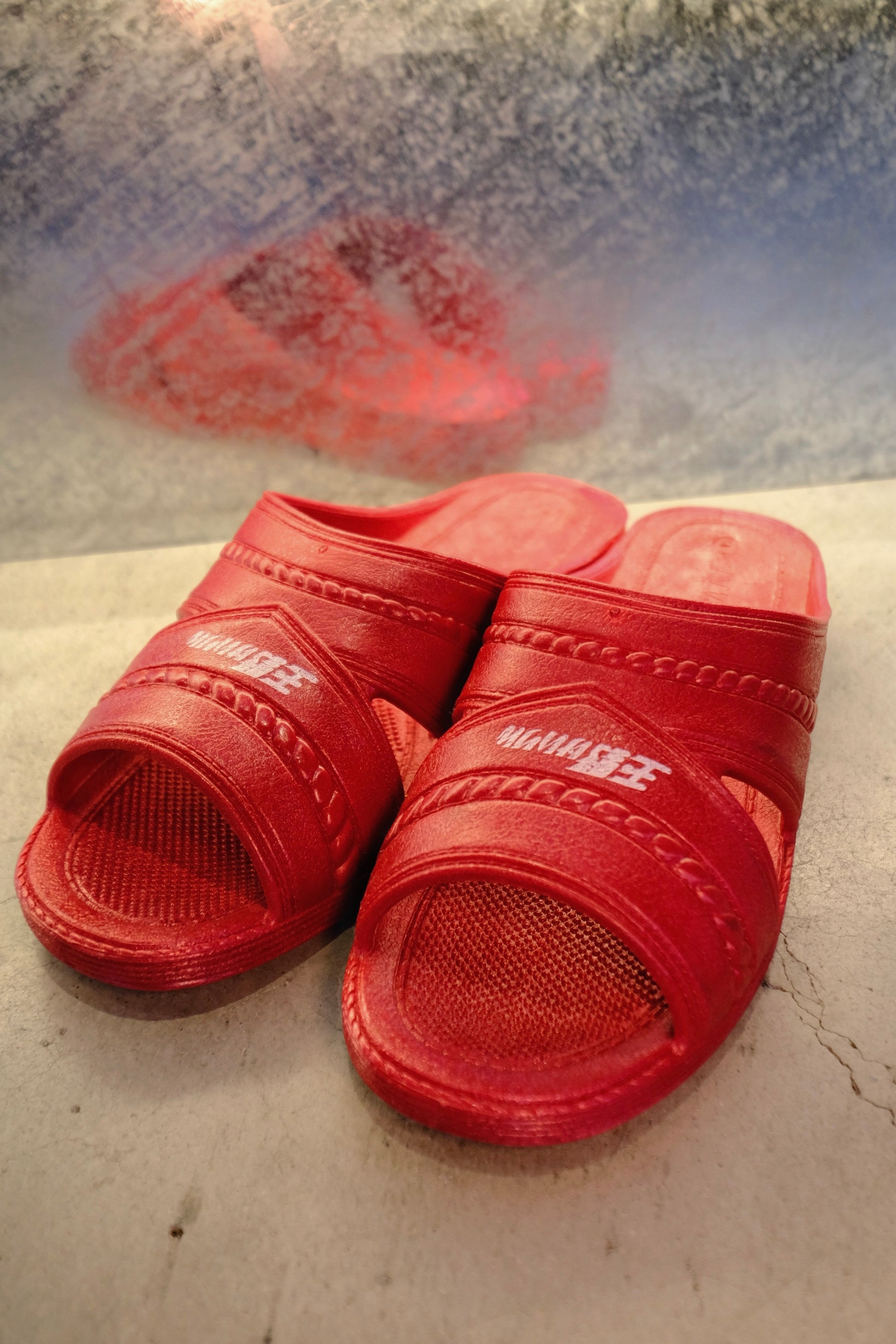競輪のスタートラインのカラーに合わせた、POPなルームサンダル。